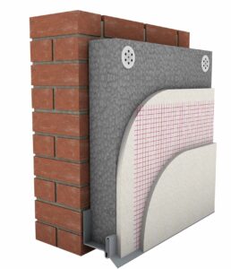 External Wall Insulation (EWI) consists of applying several layers of render and insulation to a home’s external walls: